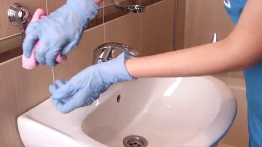 Аналогично, не следует практиковать обработку металлическими щетками и использовать жесткие абразивы. Лучше всего нанести на поверхность раковины специальное средство, подождать необходимое по инструкции время, и смыть его.