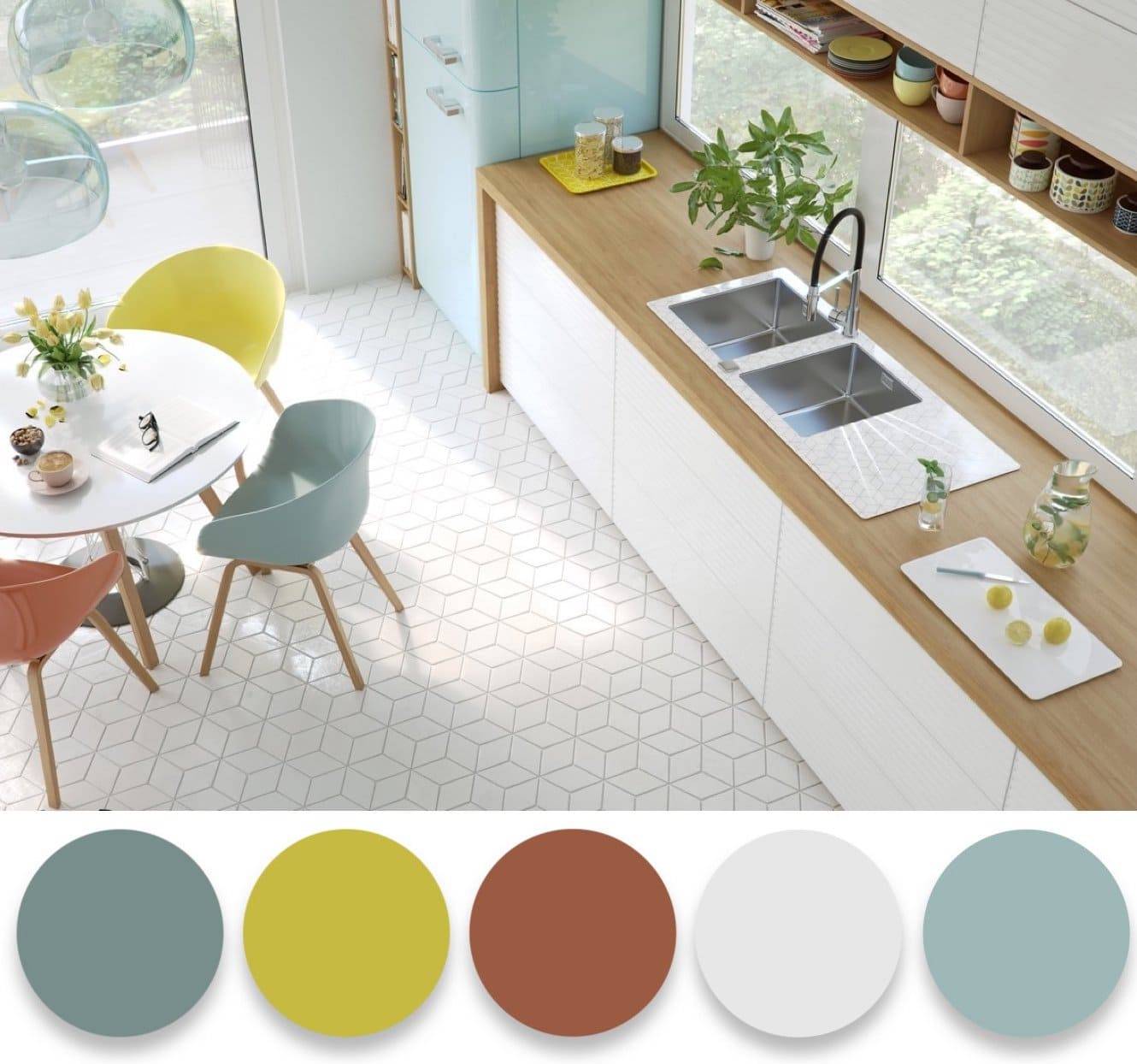 Также стоит отказаться от узорной плитки в стиле “пэчворк”, если не хотите кухню, о которой можно безошибочно сказать “конец 10-х годов”. Уходят в прошлое и ставшие знаменитыми шестигранники-гексагоны.