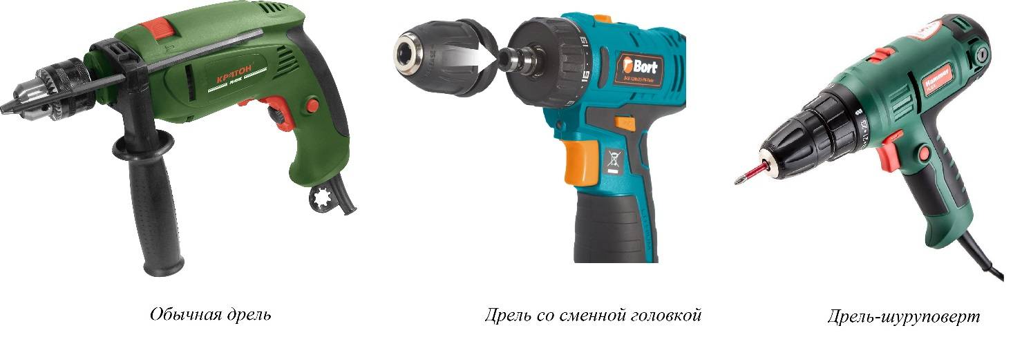 Вопрос о дрели или дрели-шуруповерте сложнее, но не критичен. Обычная дрель (ОД) в качестве места монтажа рабочего инструмента включает универсальный патрон. Дрель-шуруповерт (ДШ) может иметь как сменный патрон-головку, так и универсальный, под сверла и биты.