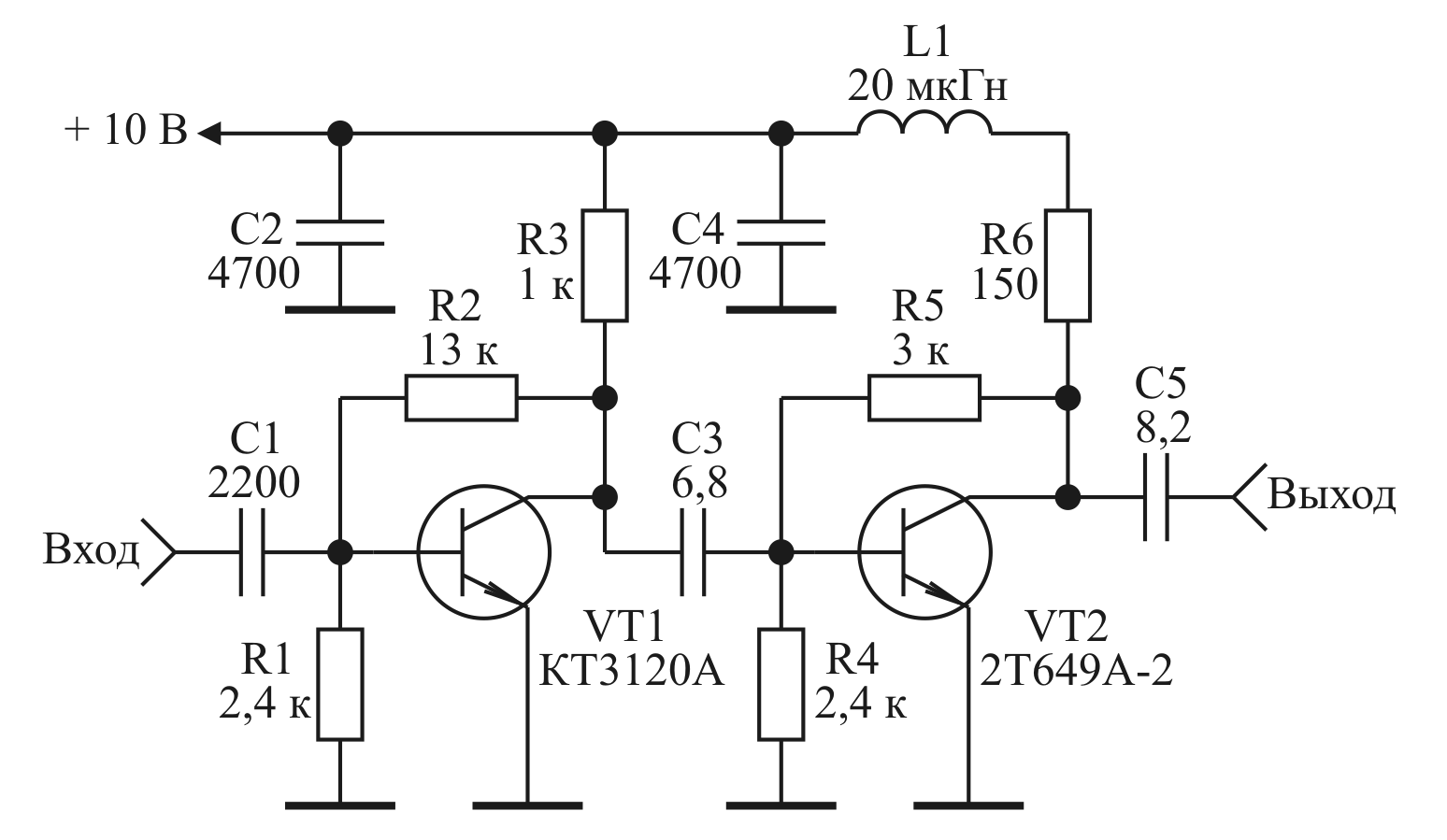 Далее рассмотрим, как сделать схемы широкополосных усилителей.