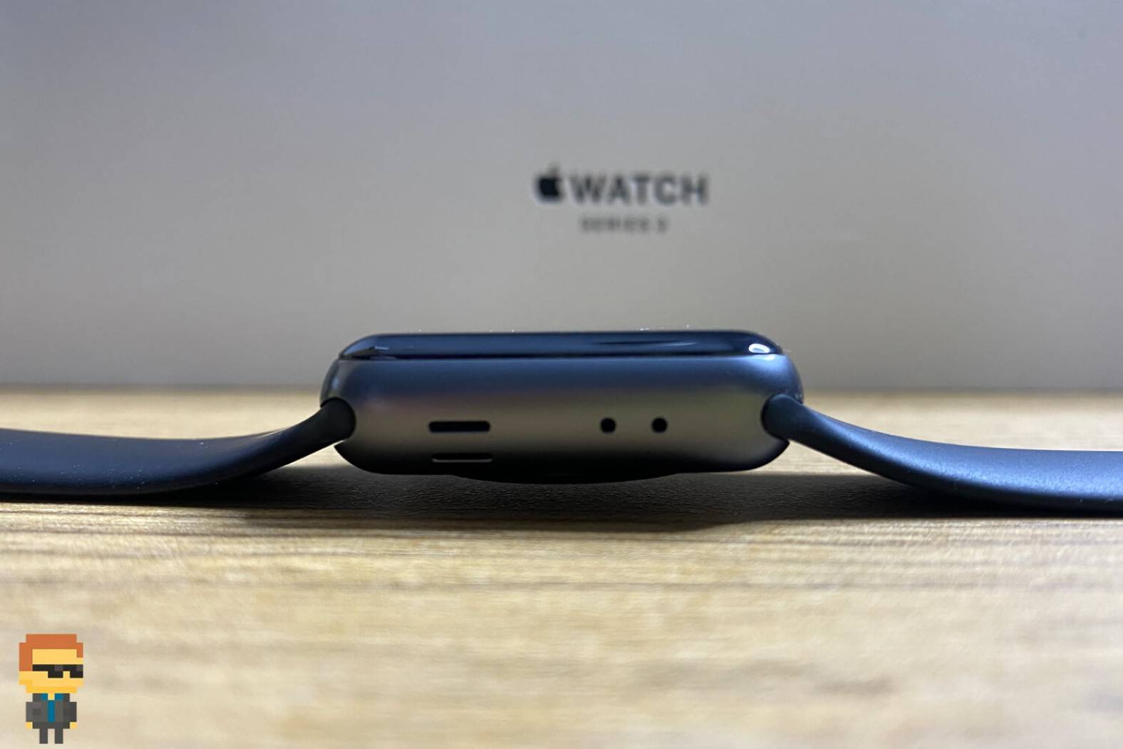 Водостойкая конструкция позволяет часам Watch Series 3 погружаться на глубину до 50 метров. На одной стороне корпуса расположена боковая кнопка и заводная головка. Для измерения сердечного ритма установлен стандартный набор датчиков, а ремешки можно легко заменять.