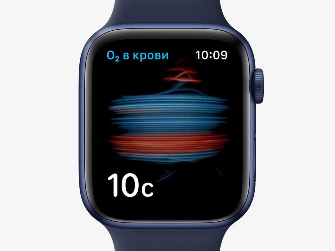 Главное преимущество Apple Watch Series 6 — специальный датчик уровня кислорода в крови. Данные замера вы сможете найти в приложении «Кислород в крови»: