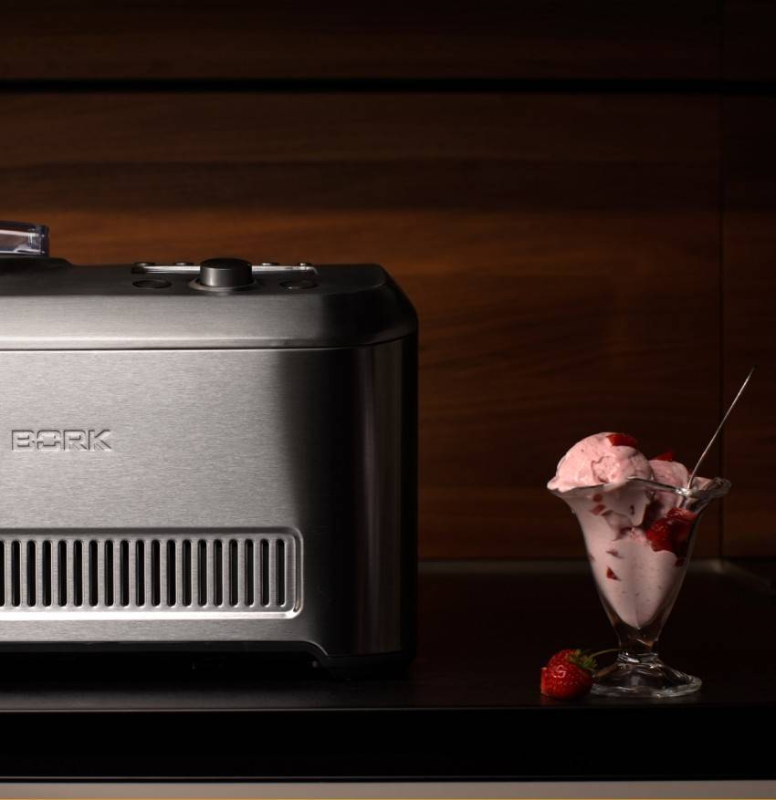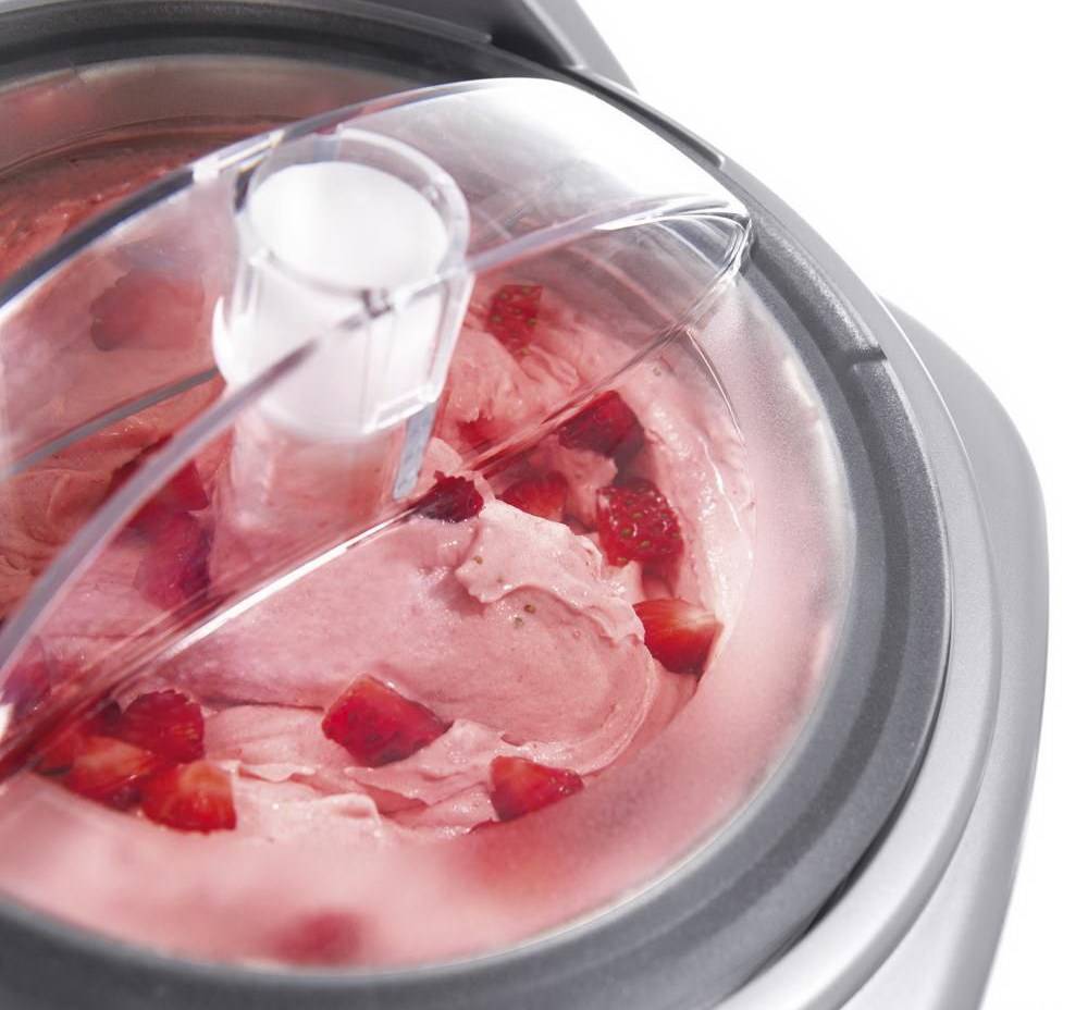 Прибор не требует многочасового предварительного замораживания чаши в морозильнике, а также гарантирует постоянство температуры при приготовлении