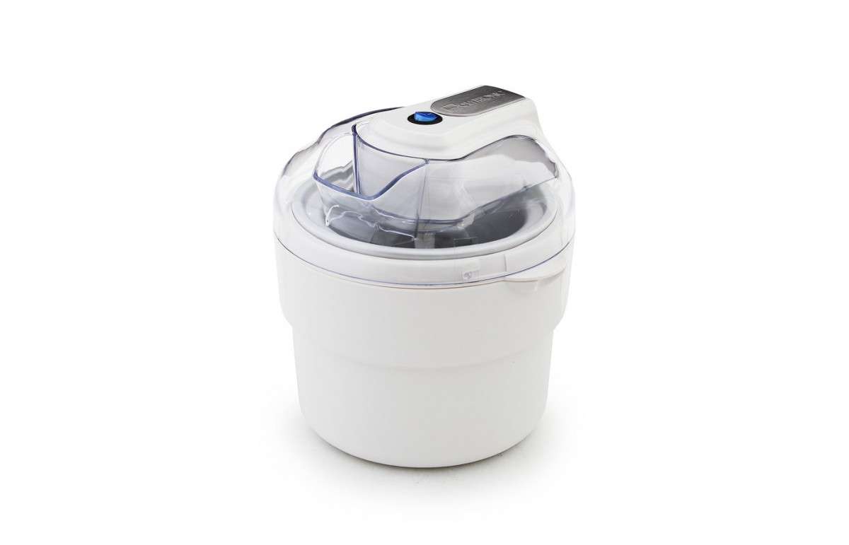 Маленькая, простая мороженица от Clatronic имеет разборный корпус, поэтому хозяйки хвалят модель за легкость обслуживания. Сквозь небольшое окно в крышке можно также наблюдать за приготовлением десерта или добавлять необходимые ингредиенты, когда устройство уже работает. Прорезиненные ножки исключают скольжение прибора по поверхности стола, а длинный прямой шнур позволит расположить фризер на достаточном расстоянии от розетки. Таймер приготовления рассчитан от 20 до 40 минут, объем чаши составляет всего 1 литр, что делает устройство компактным и позволяет сэкономить место.