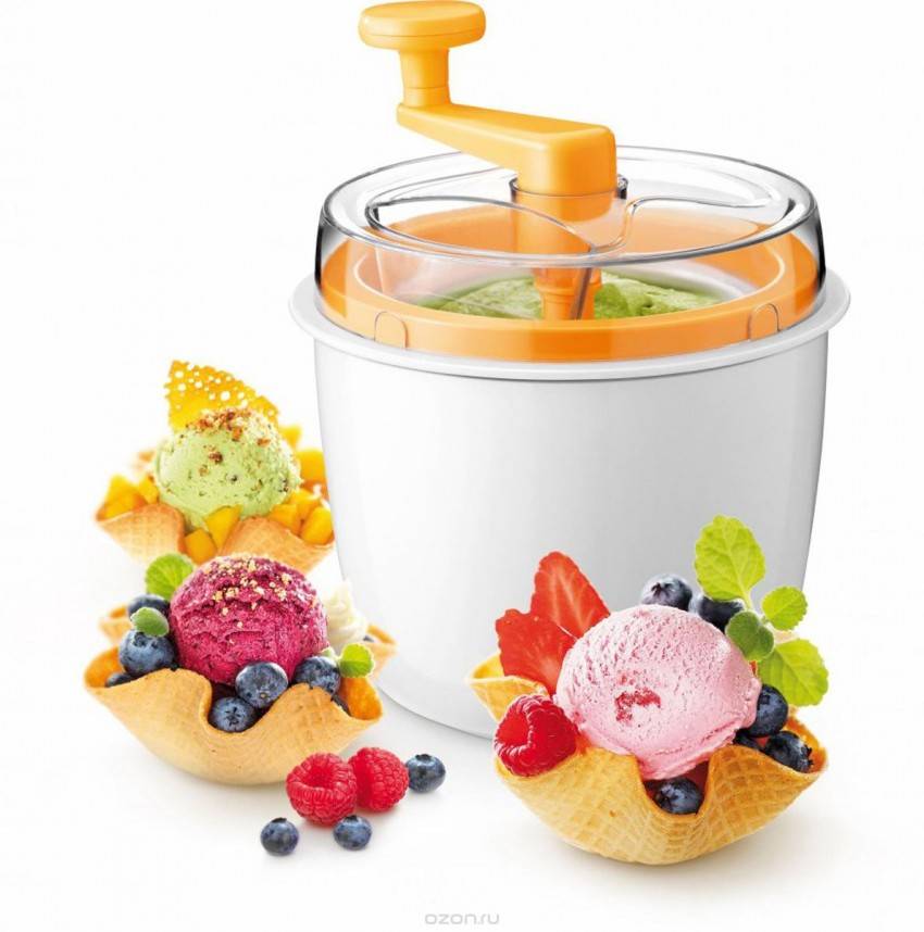 Механические, где мороженое приготавливается человеком вручную: форма остужается в морозилке несколько часов, наполняется разведенной смесью и возвращается в холод. Далее требуется каждые 30-40 минут доставать прибор и вращать специальную ручку, имитируя движения миксера.