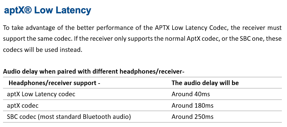 Важно, чтобы этот кодек aptX с низкой задержкой присутствовал как в приёмнике, так и в передатчике, тогда они будут работать согласованно