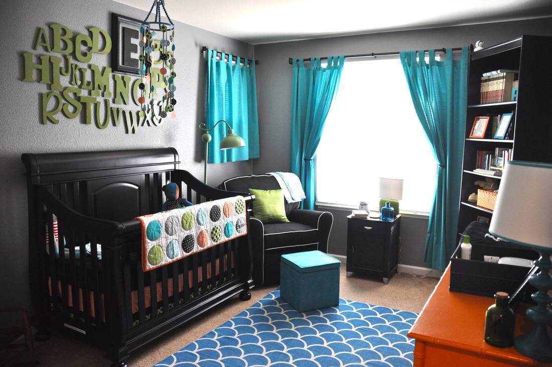 Детская в бирюзовых оттенках может быть оформлена в современном или морском стиле. Поскольку в современных жилищных условиях под эту комнату нередко выделяется немного квадратных метров, такое интерьерное решение считается выигрышным. Ведь бирюза позволяет визуально расширить небольшое пространство.