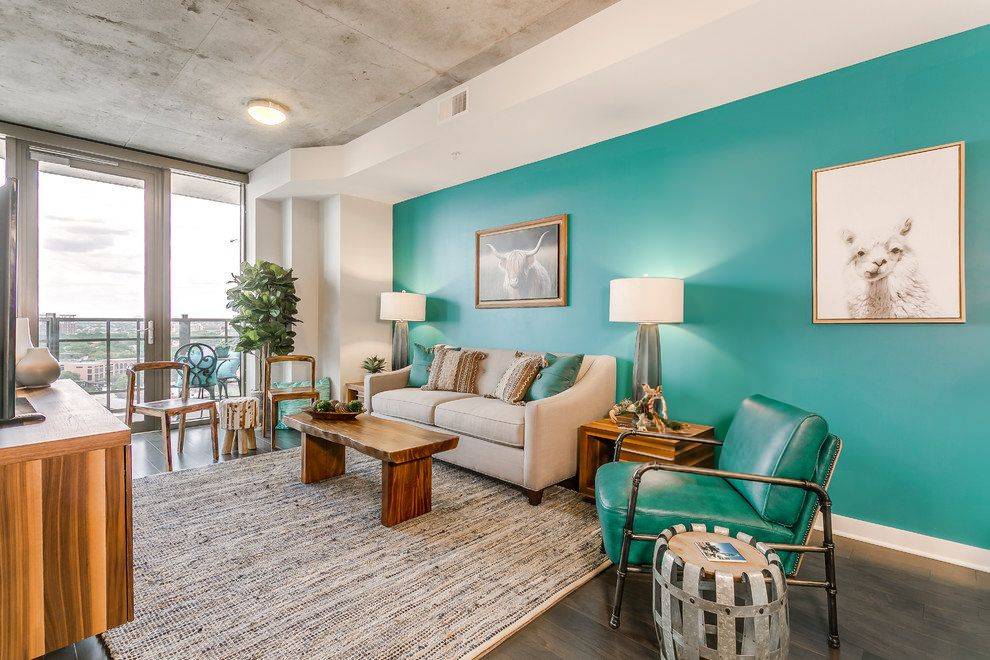 Бирюзовый цвет в интерьере гостиной: оригинальные идеи оформления комнаты