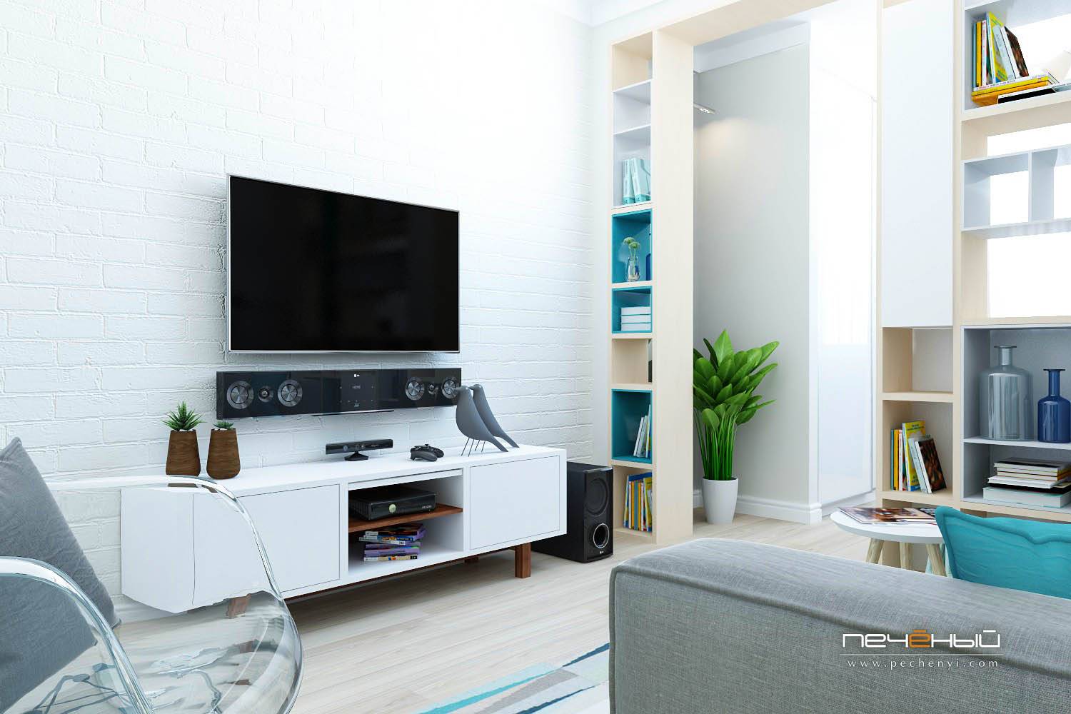 6 Квартира 25 кв. м с кроватью в нише и телевизором на стойке
