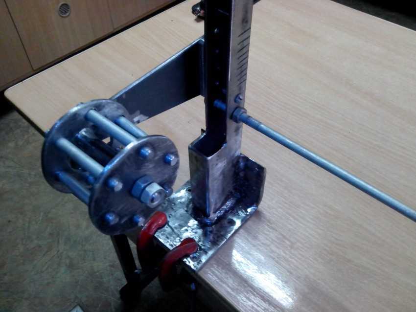 Крепление к столу или прочей опоре производится с помощью барашковой гайки, а шпилька при этом служит в качестве направляющей. Она закрепляется через переходную гайку для быстрого разбора в то время, когда приспособление не используется.