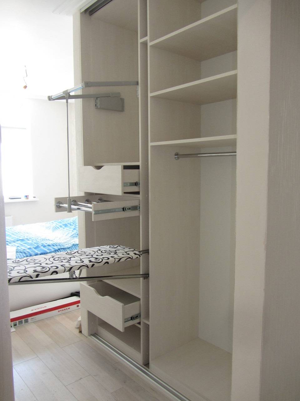 Главный вопрос – в том, откуда брать электрическое питание для утюга. Этот вопрос должен быть хорошо проработан из-за повышенной пожароопасности как самого шкафа, так и хранящихся в нем текстильных вещей.