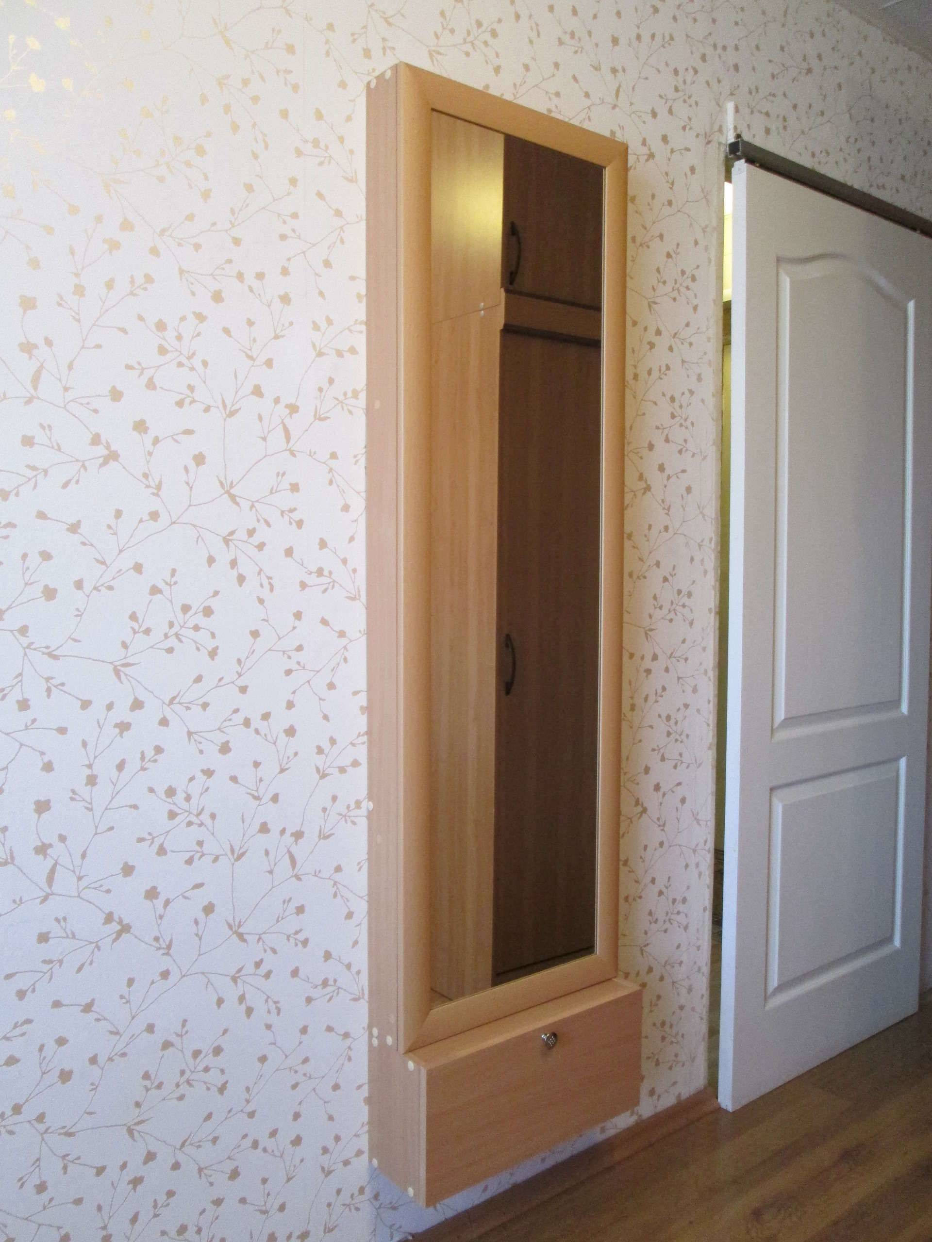 Откидную гладильную доску можно спрятать за зеркалом.
