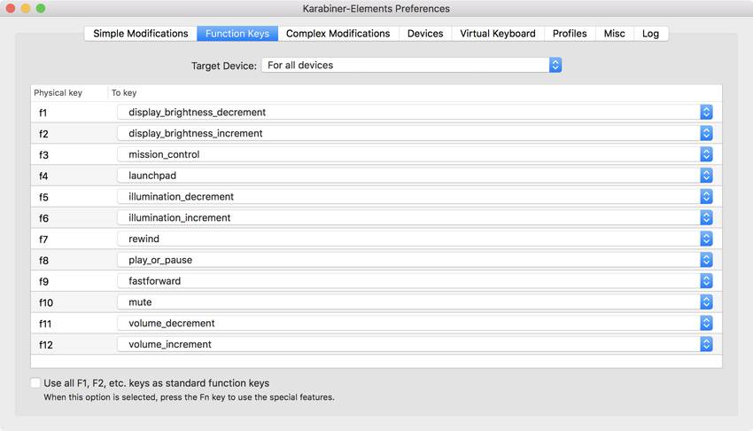 Function Keys. В этом разделе ты можешь изменить значения по умолчанию кнопок f1-f12.