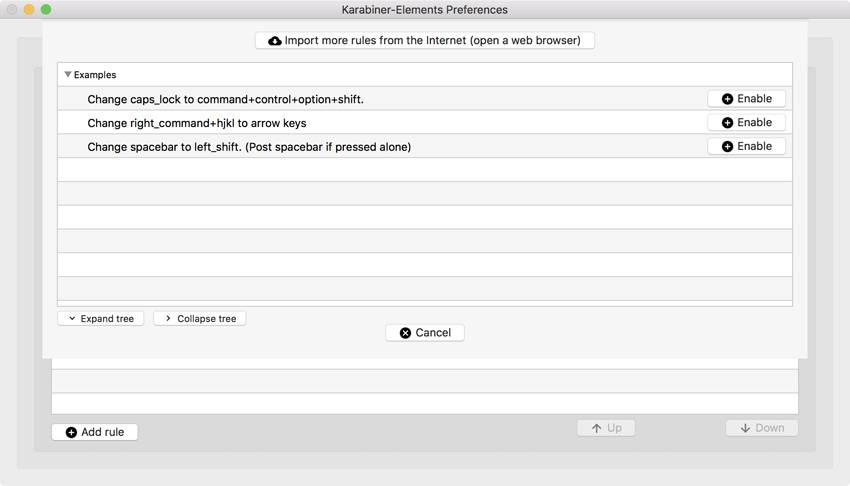 Complex Modifications. С помощью этого меню ты сможешь использовать готовые правила. Для начала тебе подготовили всего 3, но дополнительные ты сможешь скачать через интернет.