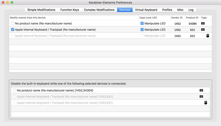 Devices. Здесь у тебя есть возможность выбрать конкретную клавиатуру, для которой будут использованы переназначения утилиты.