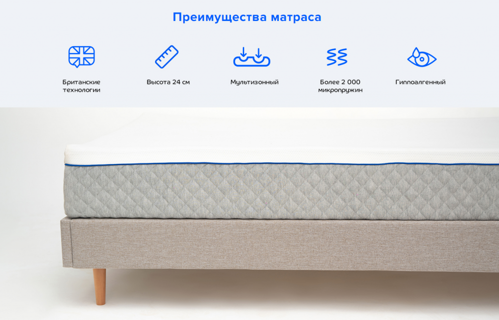 На фото гибридный матрас Blue Sleep – комбинация микропружин и пен.