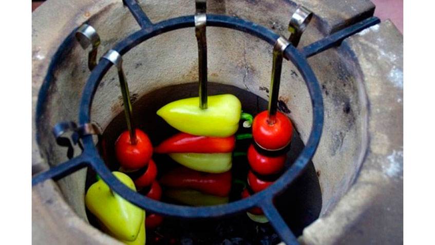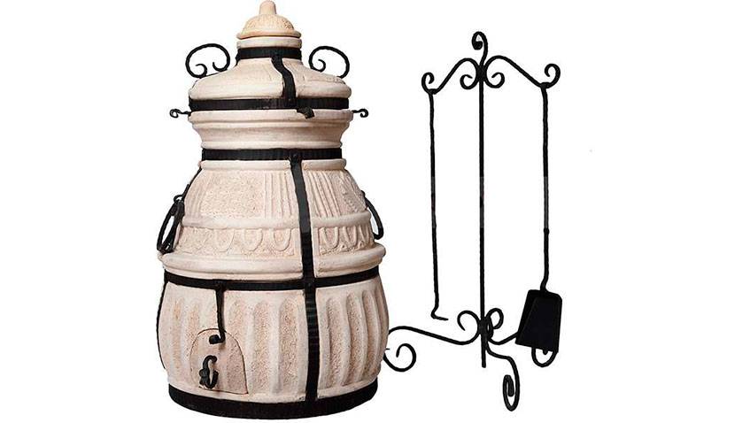 – По своей форме тандыр напоминает компактную переносную вазу. Сверху он закрывается двухуровневой крышкой, а внутри имеет приспособления для вертикального расположения шампуров. Для того, чтобы приготовить блюдо, необходимо заложить дрова внутрь тандыра. После того, как внутренние стенки станут белыми, можно готовить. Кроме того, в нижней части восточной печи предусмотрено отверстие, через которое нужно убрать уголь. Все блюда готовятся только от жара керамических стенок.