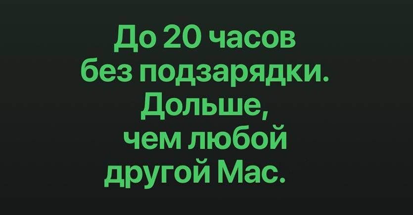 Второе по значимости изменение после производительности – это автономность новых моделей. Если в линейке Air, которая и на старых процессорах работала долго, прирост автономности составил около 30-40%, то в “прошке” показатели более впечатляющие.