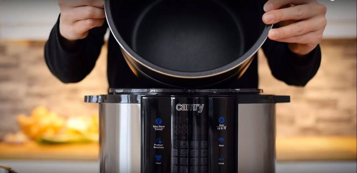Скороварка – техника, для работы которой требуется высокое давление. Поэтому, если во время готовки открыть крышку, то давление сбросится в аварийном режиме. И, чтобы продолжить, его придется нагнетать заново.