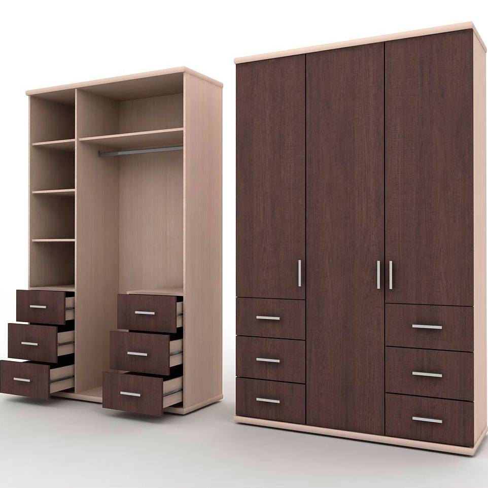 - трехдверный — отличается от предыдущей модели более просторным отсеком, где можно хранить вещи в шкафу на плечиках, например, пальто, шубу. Модели нередко с ящиками, где можно расположить обувь. Классический вариант – шкаф распашной с зеркалом на средней дверце;