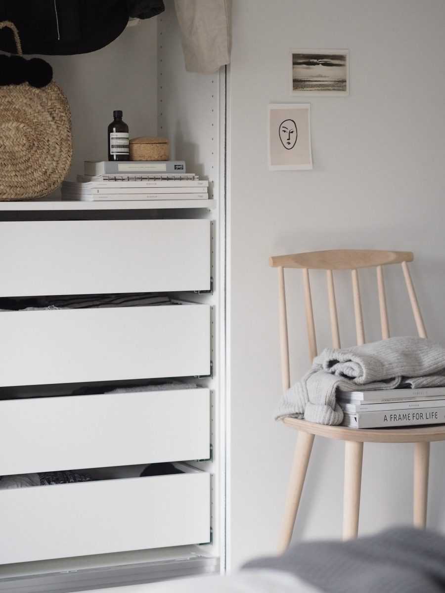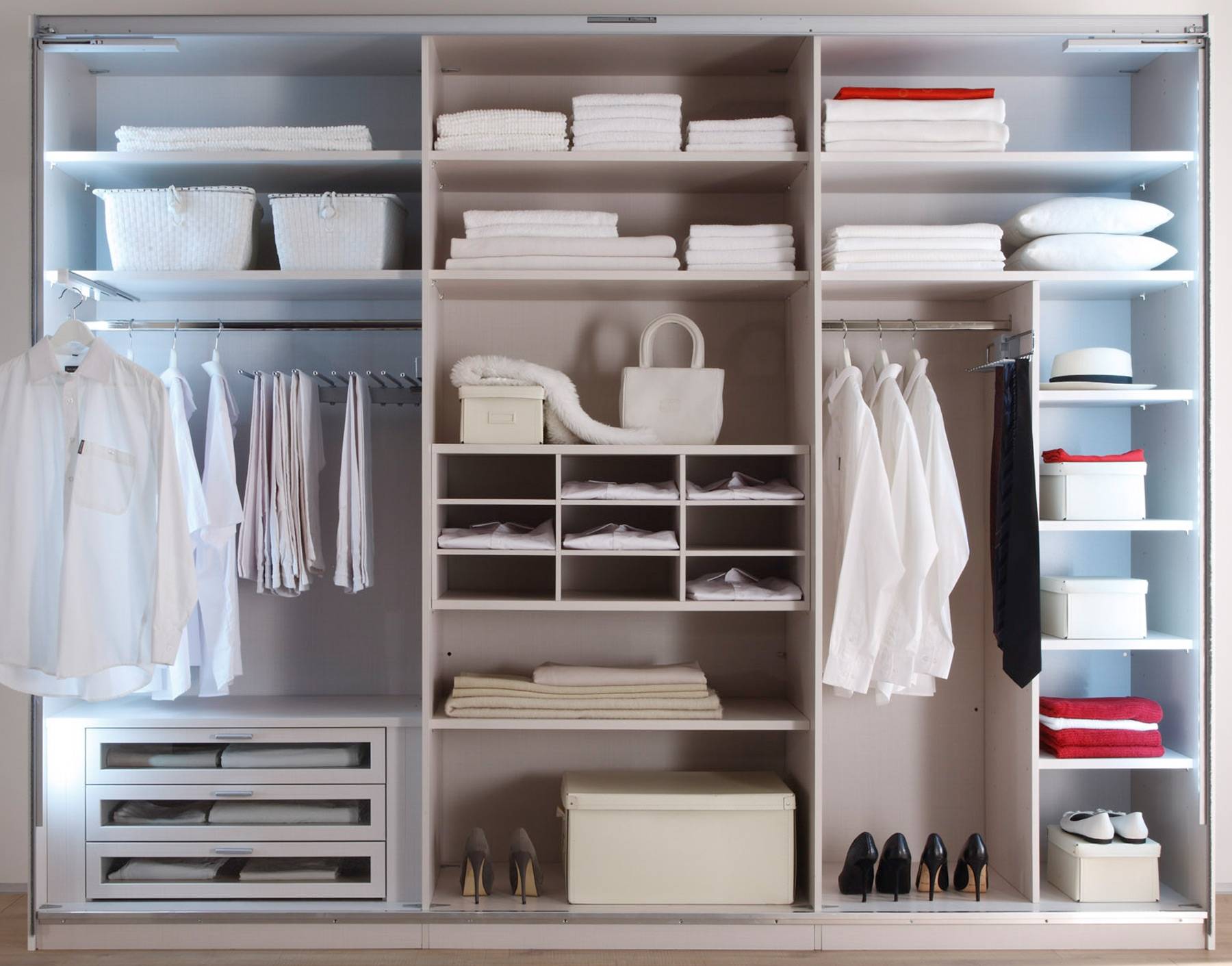 Первый — для тех вещей, которые редко используются, в том числе сезонные. Если шкаф находится в спальне, постельное белье размещается в ящиках в нижней части.