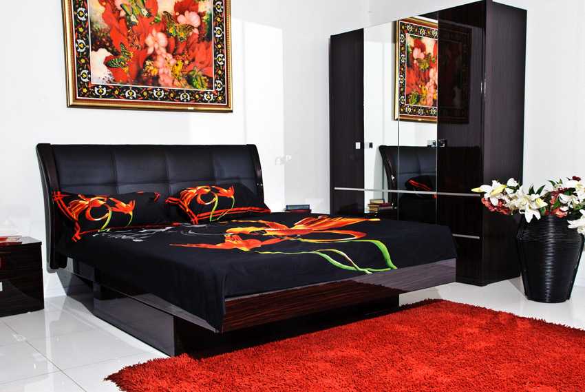 Если вы хотите добавить акцента в спальню, используйте красный цвет, например, в декоре шкафа-купе