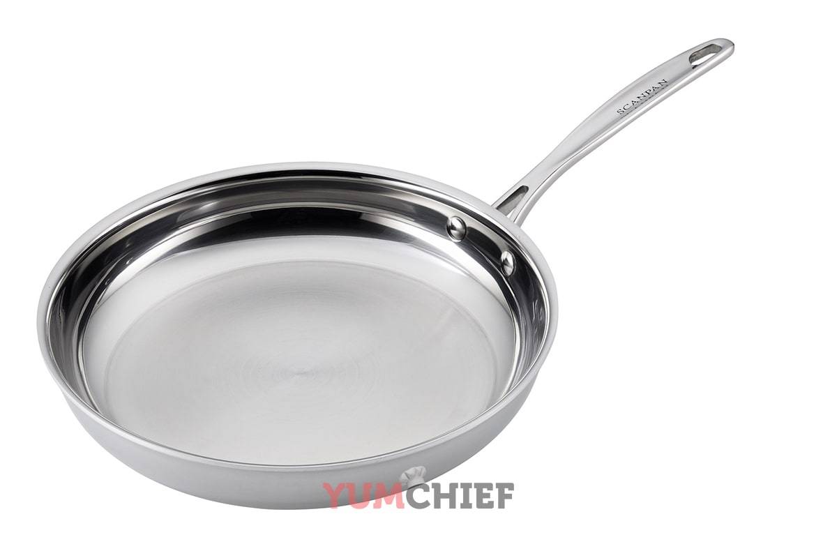 Сковороды из нержавеющей стали устойчивы к деформации, коррозии, воздействию кислот и щелочи. Они легки и прочны. Такая посуда проста в уходе, не изменяет вкус и цвет продуктов, за что её очень любят профессиональные повара.