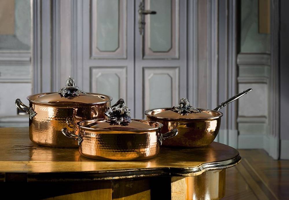 Утварь из благородных сплавов смотрится аристократично и способна украсить любое кухонное помещение. Рассматривая стильное изделие, можно подумать, что это сотейник не для будничной готовки пищи, а часть красивого сувенирного набора. Специфические свойства данного материала ценят профессионалы, поэтому в элитных ресторанах медные приборы в почете.
