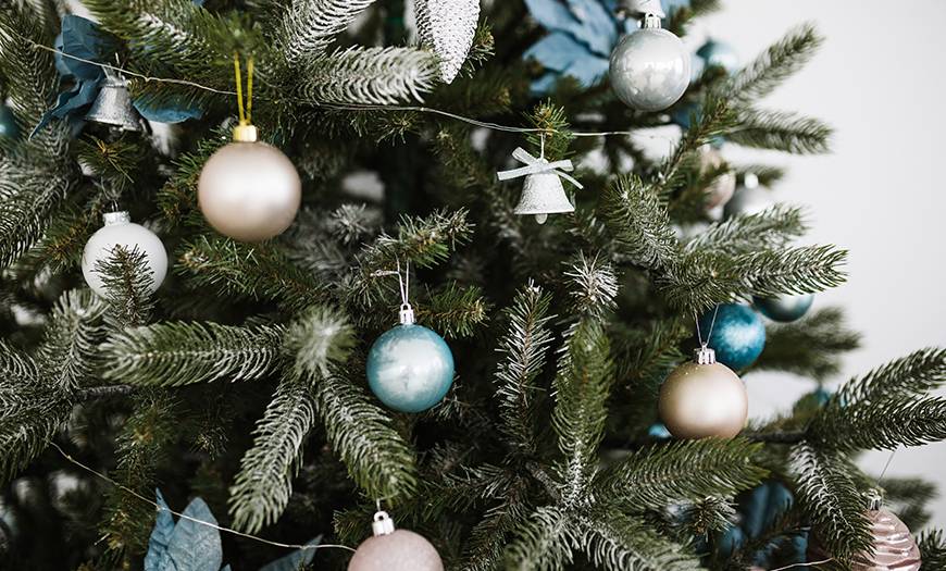Главный совет – пусть оттенки перекликаются с теми, что уже есть в вашей комнате. Если у вас активный бирюзовый (к примеру, шторы и диван в таком цвете), пусть лесная красавица тоже будет наряжена в бирюзовые тона.