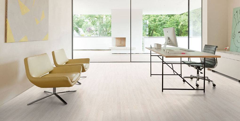 Чтобы удачно использовать достоинства белого покрытия, нужно добиться сочетания элементов интерьера с ним. При правильном выборе цветовой гаммы следующих деталей помещения, светлый ламинированный пол выглядит прекрасно.