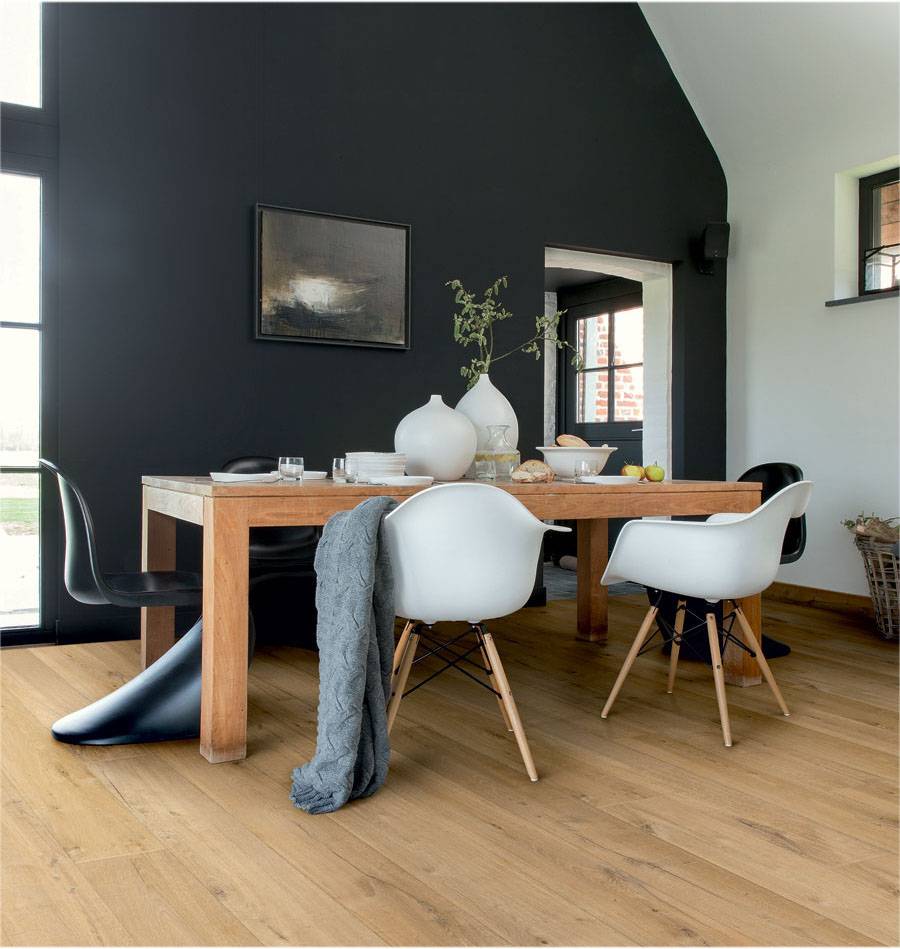 Универсальность. Какой бы стиль в интерьере вы ни предпочитали, от классики и барокко до минимализма и хай-тека, темный ламинат везде будет в тему.