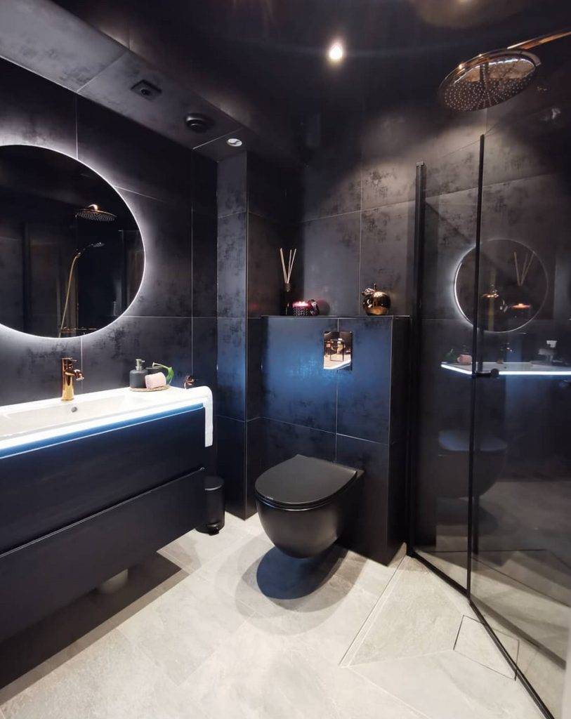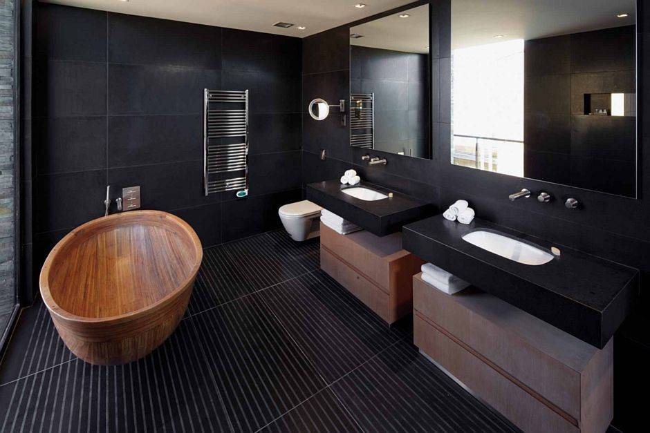 Кстати! Лучше, если фон для тёмной сантехники будет светлым, чтобы подчеркнуть контраст.
