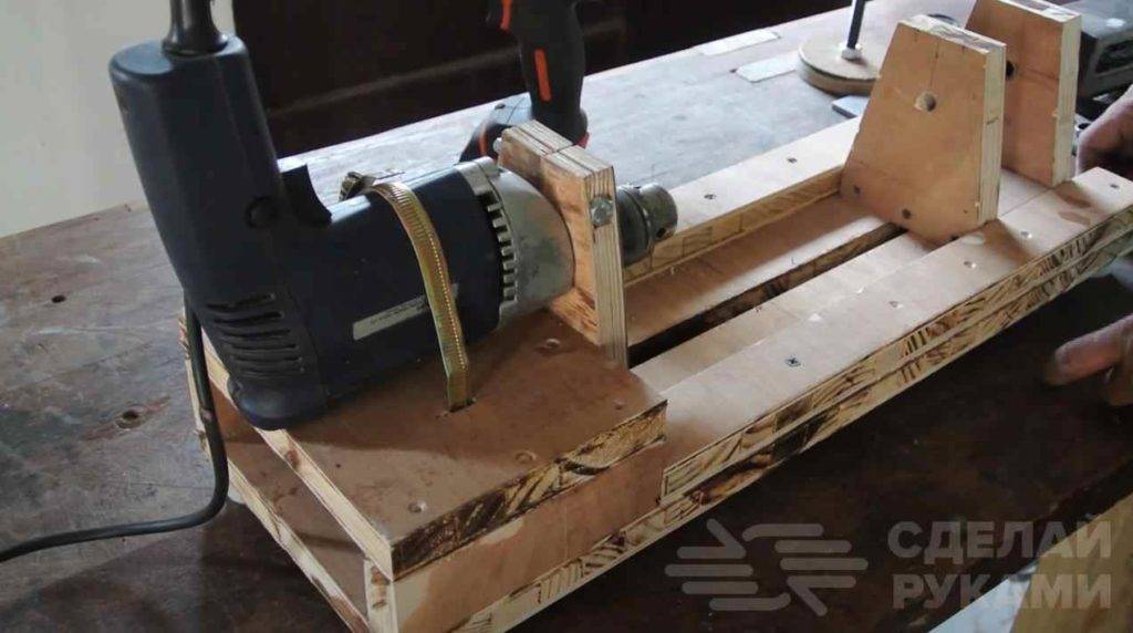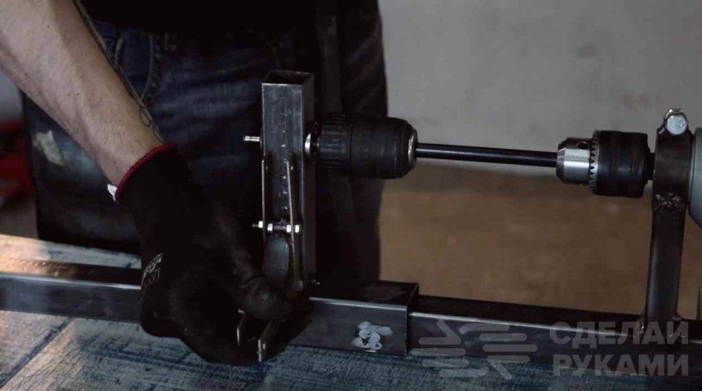 В токарной домашней установке задняя бабка выполняет функцию поддержки, установленной строго по центру обрабатываемой болванки, и фактически служит второй опорой. Во время сверления конструкция соединяется специальным прихватом с подвижной кареткой суппорта и через него получает механическую отдачу.