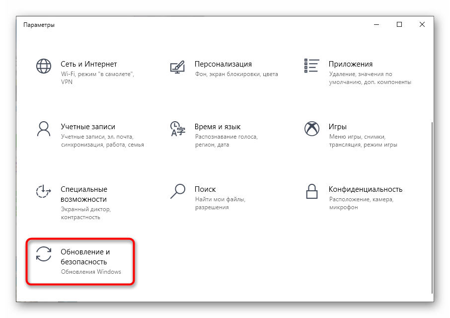 Выберите раздел «Обновление и безопасность».