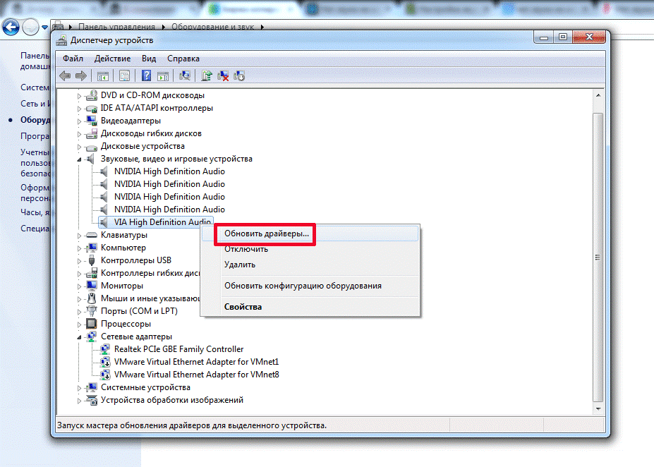 Возможно, проблемы со звуком связаны с неправильной работой драйверов звуковой карты. Из-за этого тоже может появиться ненужный шум при подключении устройств. Если предыдущие меры не помогли, используйте обновление или переустановку драйверов, поставьте совместимые драйвера, даже если они «неродные».