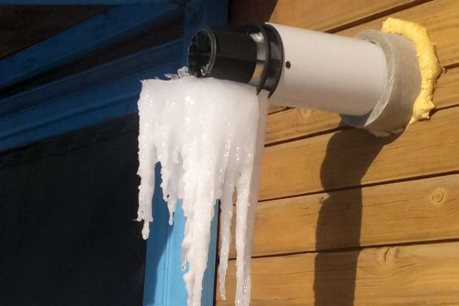 Проблема обледенения трубы появляется в основном у настенных или парапетных котлов. При работе оборудования в трубу вместе с горячим воздухом поступает водяной пар. За счет разницы поступающего воздуха и температуры на улице происходит конденсация пара.