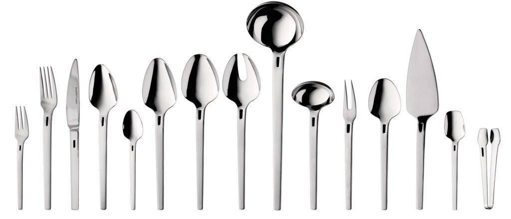 Столовые приборы бельгийского бренда BergHoff, обслуживающие 12 человек. Для этого прилагается 72 предмета. Они достаточно прочные для ежедневного применения. Элегантность превращает застолье в изысканную прием.
