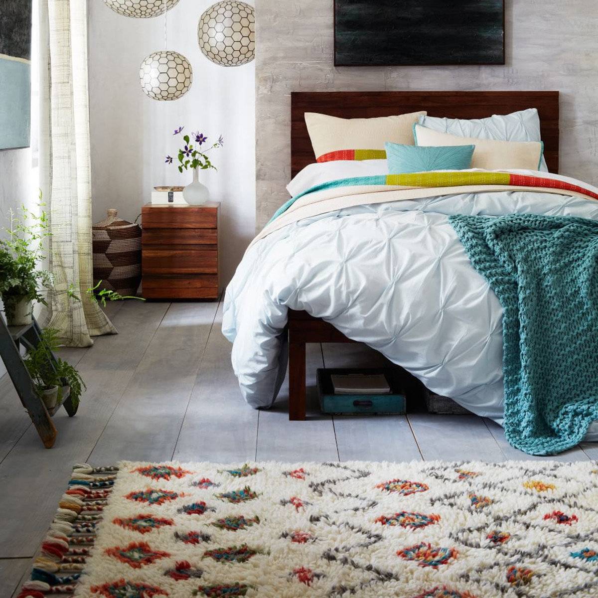 Когда вы выбрали стиль спальни, обновили шкаф, постельными принадлежностями и подушки, то пришло взяться за коврик. Вы можете сделать ставку на нейтральный, бежевый, плоский плетеный или мохнатый ковер, так как он будет соответствовать абсолютно любой метаморфозе, которую планируете в спальне.