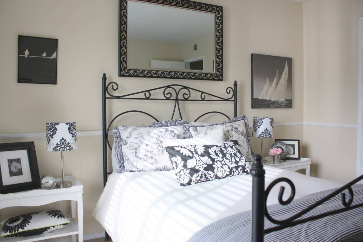 В большой спальне можно разместить и крупногабаритный платяной шкаф, и широкую кровать с тумбочками, и туалетный столик с симпатичным пуфиком для удобства и уюта. Всё свободно поместится! Решая же, как обставить маленькую спальню, будьте готовы пожертвовать некоторыми предметами ради того, чтобы «дышалось свободнее». Кстати, вот вам один маленький фокус: зеркало на стене визуально увеличит пространство небольшой комнаты.