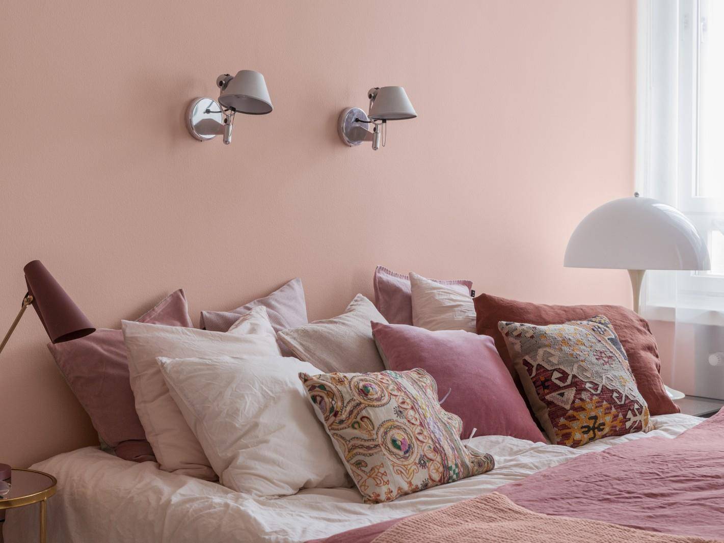Решая, какого цвета должна быть спальня, следует отдать предпочтение не очень ярким краскам. Известно, что насыщенные цвета (красный, ядовито-зеленый, оранжевый) могут действовать на нервную систему возбуждающе, подолгу не давая уснуть. Так что лучше избегать слишком уж кричащих оттенков.