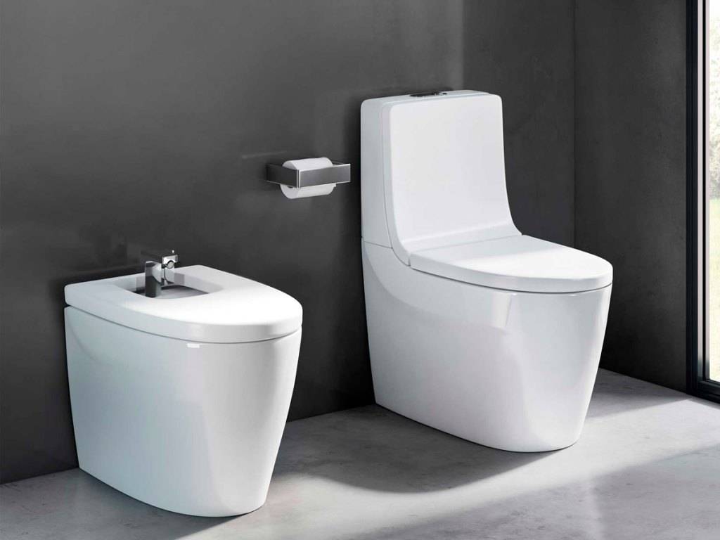 Изделие выглядит, как унитаз, но дополнен водяными форсунками, которые называются бидетки. Устанавливают подобную сантехнику в комнате небольшого размера.