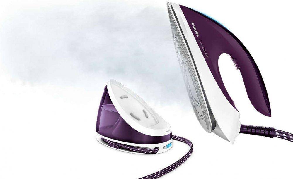 Парогенератор — тот же утюг, только с паровой станцией в придачу. В состав последней включена база для утюга и емкость с водой. Густой пар под давлением проходит через отверстия в подошве агрегата и проникает в структуру ткани, мгновенно расправляя ее.