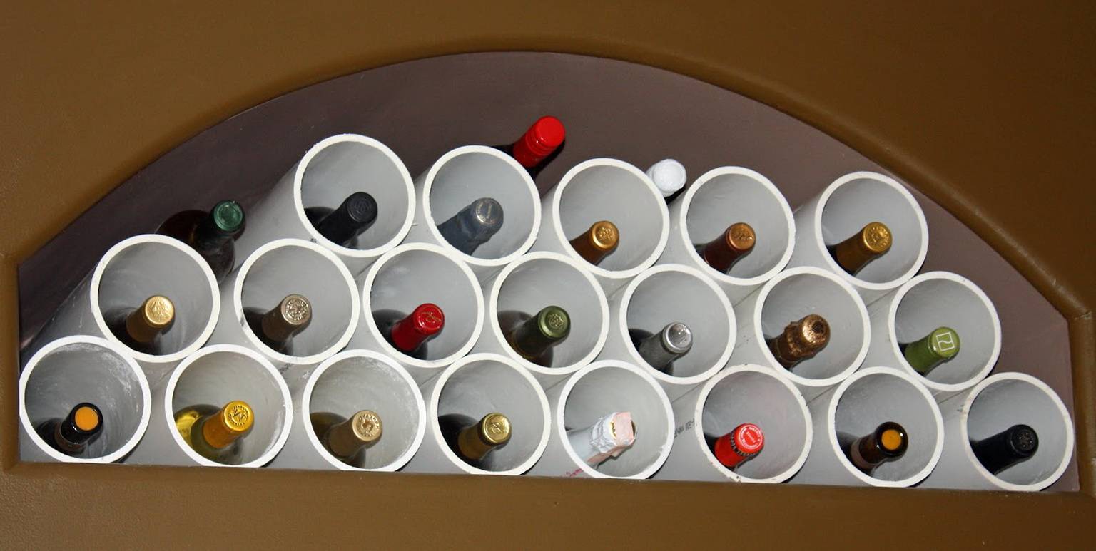 Совершенно нестандартное решение использовать для создания мини-бара трубы ПВХ. Этот отменный вариант для хранения бутылок для стиля хай-тек, минимализм, лофт. И в любом интерьере, в котором классические деревянные бары неуместны. Изготовить такой легко, нужны такие инструменты и материалы: