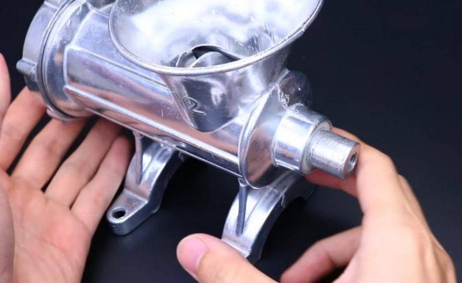 Для сборки электроагрегата берем ручную мясорубку без ручки вращения. Если по какой-то причине такой агрегат отсутствует, не стоит волноваться — стоит он недорого, а на базарных развалах есть вполне живые экземпляры.