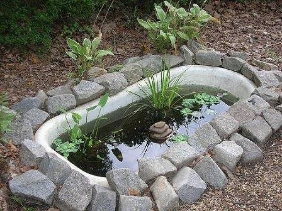 Первый прием используют значительно чаще. В нашем видео мы подобрали наиболее удачные примеры того, как обыграть пруд из ванны, сделав его творением природы: