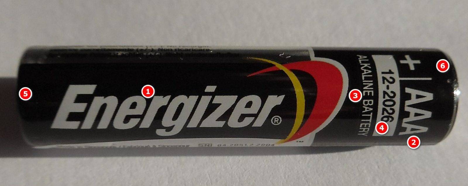 У всех мизинчиковых батарей положительный электрод является выступ на торце изделия, при этом он занимает размеры около трети диаметра (обозначается плюсом на корпусе). Отрицательный электрод — это плоская или слегка рельефная площадка на другом конце батарейки (обозначается минусом). Габариты у всех так же одинаковые, вес будет отличаться из-за разных технологий производства.