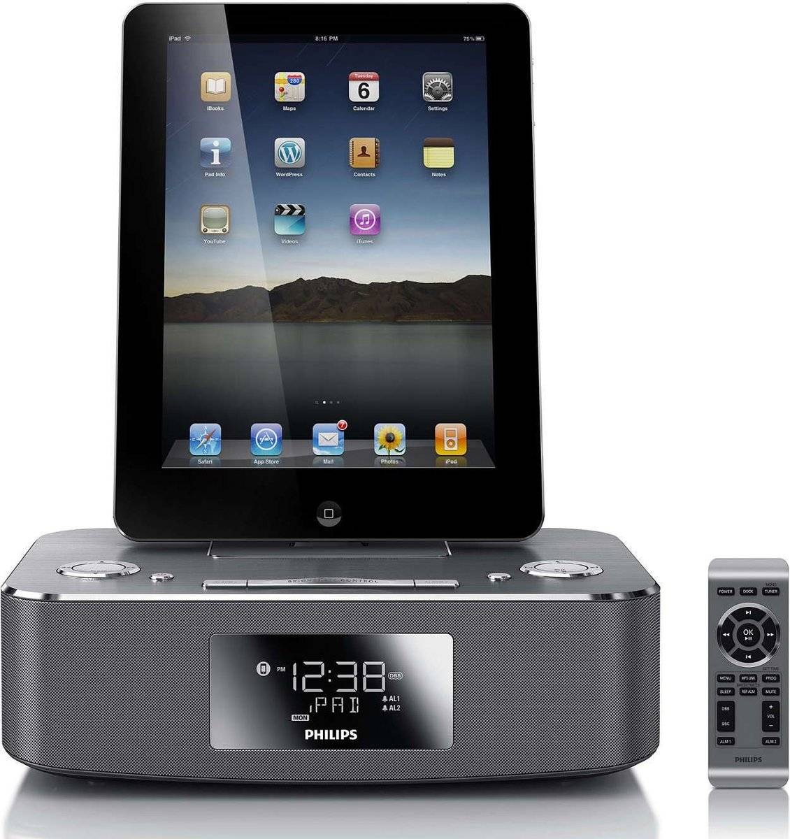 Массовое производство первых док-станций организовали для знаменитого плеера iPod. Подключая яблочный девайс к устройству, можно было не только заряжать его аккумулятор, но и через встроенные в станцию или отдельно подключенные динамики прослушивать музыкальные композиции, записанные на плеере. При этом ощутимо усиливалась мощность выходного сигнала, что позволяло использовать всю подключенную конструкцию как полноценный музыкальный центр. На сегодняшний день продолжается выпуск док-станций для воспроизведения музыки, одновременно служащих усилителем звука для мобильных девайсов.