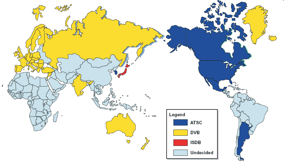 - ATSC (Advanced Television Systems Committee) – стандарт, вещающий в Америке.