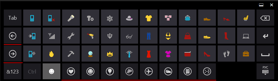 Здесь важно обратить внимание на вкладки, где доступны разные типы смайликов и на стрелки (влево, врпаво), которыми можно прокручивать страницу вкладки типов смайликов (если все смайлики вкладки не помещаются)