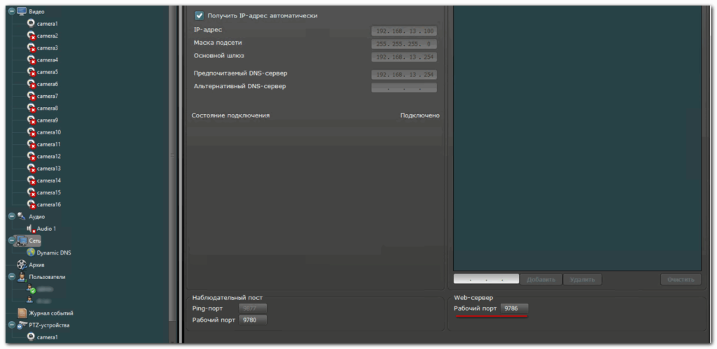 Предположим, что есть Видеосервер с ПО “Линия” к которому необходимо получить доступ извне. Для начала откроем настройки программного обеспечения “Линия”, чтобы узнать порт Веб-сервера: